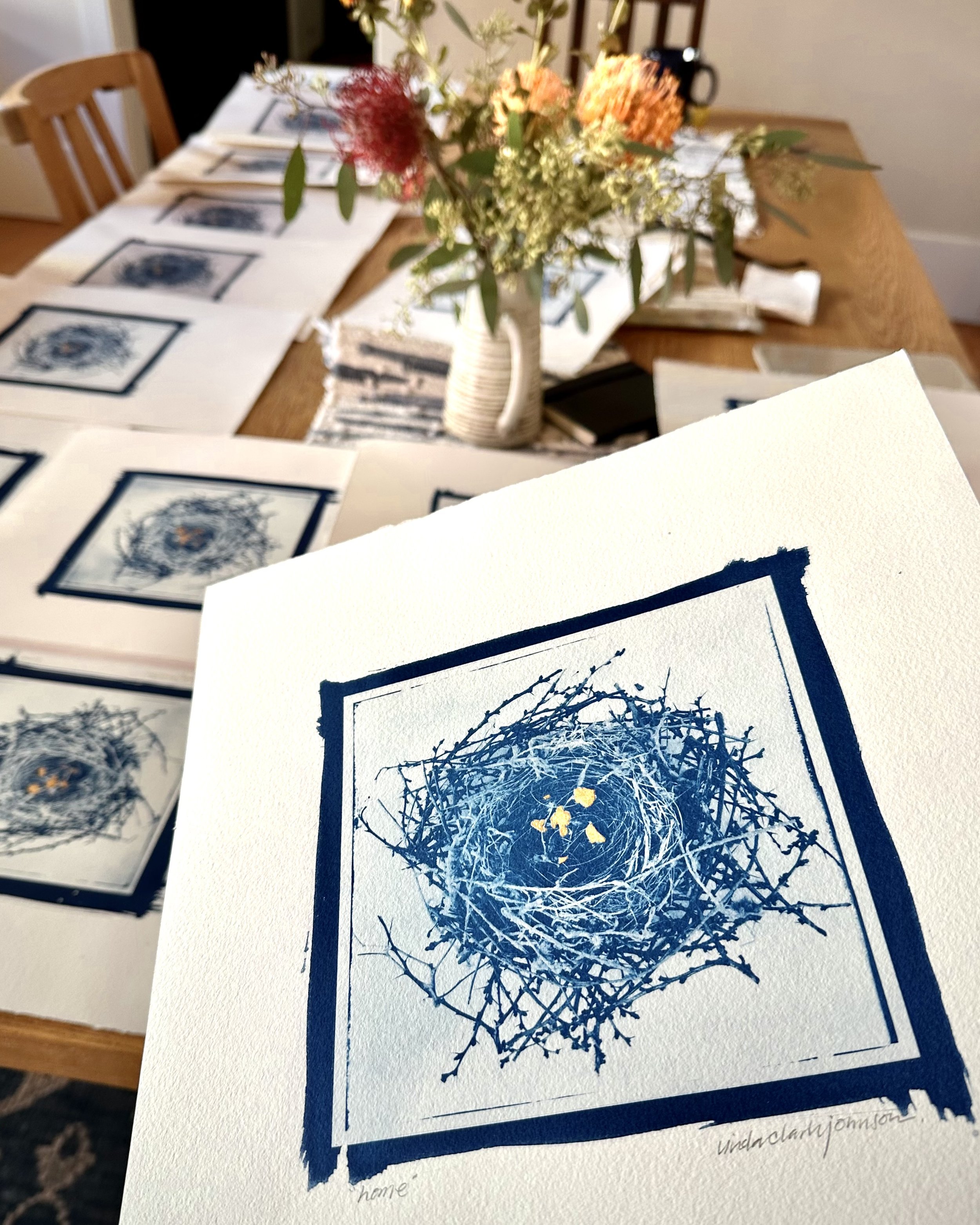 I’ll share my NEW large cyanotypes, rich textile collages, petite watercolor landscapes, giclee prints, and plenty of ceramics. Enjoy cool drinks, snacks, and lots of nice art-loving folks. I’ll have 2 guest artists on the patio showing mixed media collages and hand crafted jewelry. Visit all 3 of us in one location!!