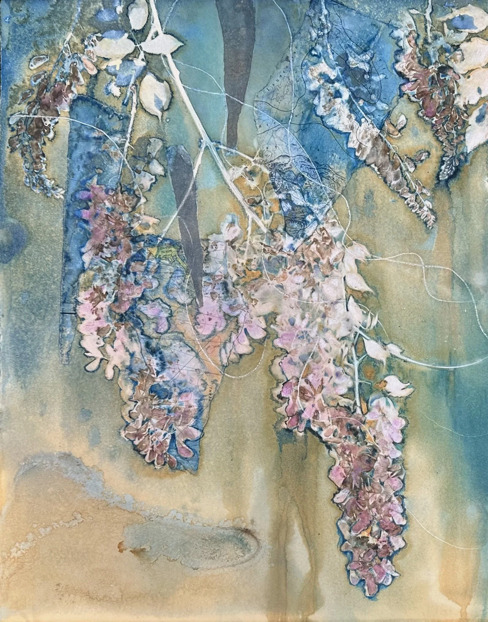 Spring Rain, detail | 2025 | cyanotype, collage and watercolor
